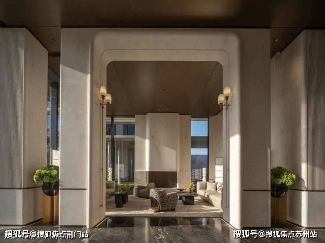 这两年的杭州住宅,首先要较量的就是大门——约30米宽的主入口,影壁之中的每一块贝金米黄石材都重约2吨,由工匠手工打磨,保留粗粝的天然质感。