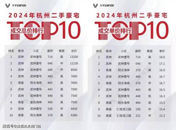过去10年,杭州5万以上的市场滨江占比份额约53%,6万以上的市场滨江占比约70%。2024年杭州华宅二手房单价&总价前10名,均来自滨江;萧山三个3000万起步的顶豪楼盘,其中观湖里、湘湖壹号,这2个均来自滨江。