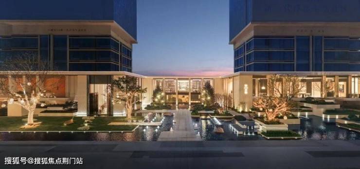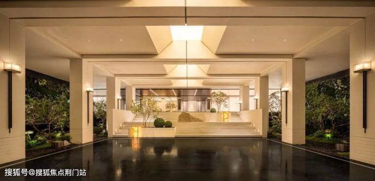 项目将大面水景置于社区前场,结合绿植、流瀑、雕塑等,构筑了令人印象深刻的入口界面。