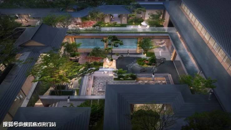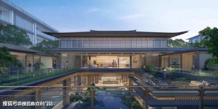 住宅立面设计延续了宋式建筑水平、简洁、飘逸的审美精髓,私人庭院内采用传统园林“堆山、叠石、理水”的造园手法,并以建筑、灌木、小桥和流水,构建起高、中、低三个层次的景致。