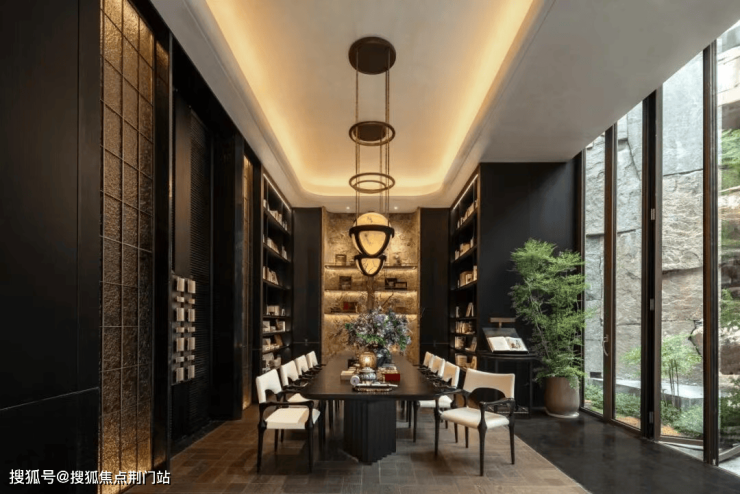比如恒温泳池底部以约3000片马赛克拼贴出流动画卷,私宴厅铜丝钉珠绣吊灯耗时近300小时手工制成,棋牌室与书吧通过光影设计营造"月光漫过屋檐"的意境等等。