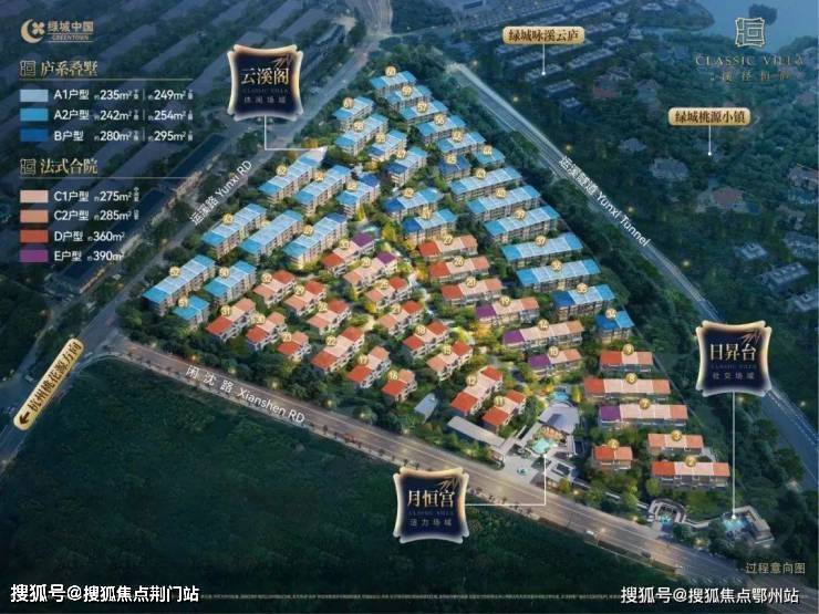 绿城桃花源低密项目绿城溪径恒庐,规划为合院+叠墅,共计363套,(风格现代东方+创新简法),99套合院(285-396方)、264套叠墅 (249-280方)。