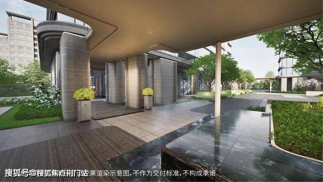 主题架空层与景观一体化设计,在功能、空间、形态上形成互动与互补,内部空间与外部景观良好融合;全域风雨连廊,功能上实现无风雨归家及游园,视线上随着脚步,沿途移步异景,当你归家时犹如穿越绿洲的旅行。(报建为景观廊架,后期存在改造的可能,以实际交付为准)