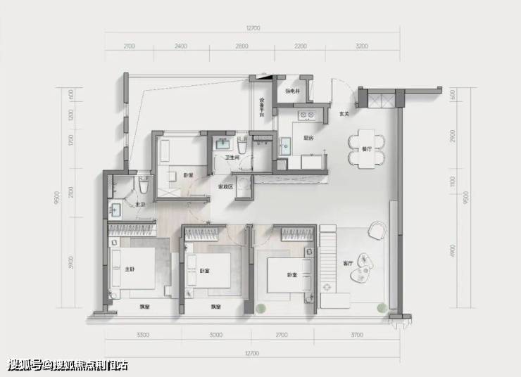 这个108方户型,不要说在一江两岸的新房中是唯一,放眼全杭州也极其罕见。关键尺度感毫不逊色于其他120多方的4房户型。