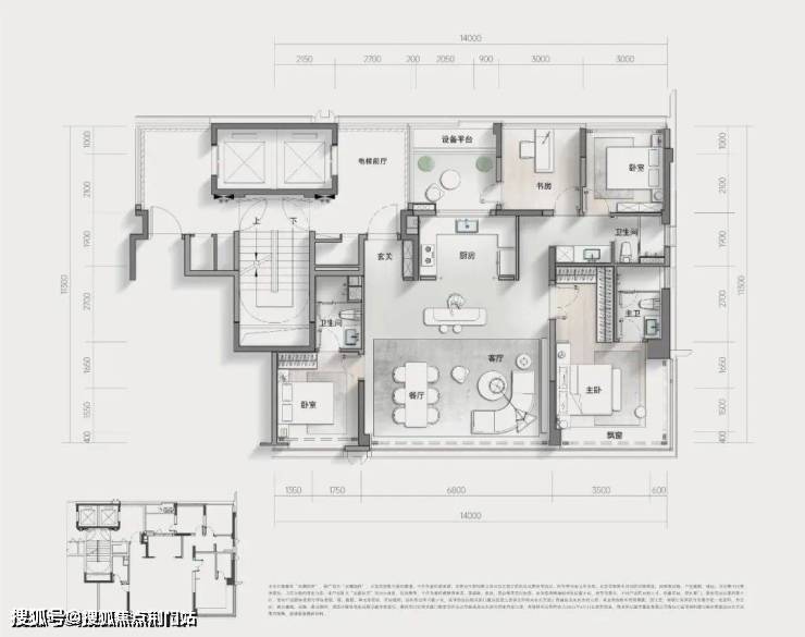 高层层高3m,标准架空层4.5米,139方户型楼幢架空层高达5.1米,也是板块内的最高配置。