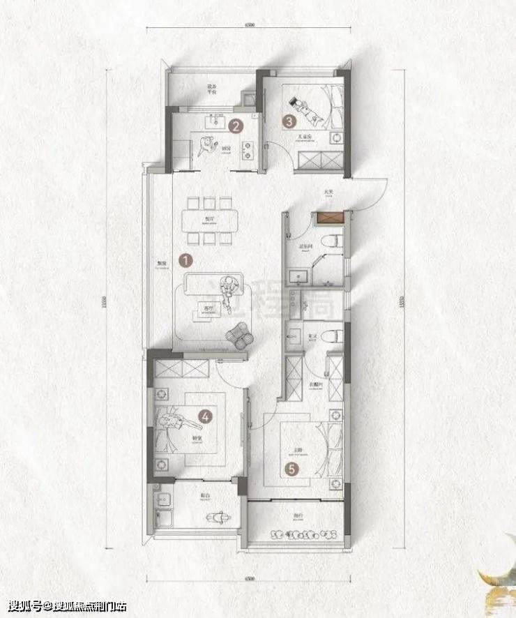 户型特点:这个面积户型有两款,一款是“四开间南户型”,每个房间都向阳,还是准双套房。另一款是少见的边套户型,自带约6.1米大边厅,套房主卧,功能性和舒居感兼备。