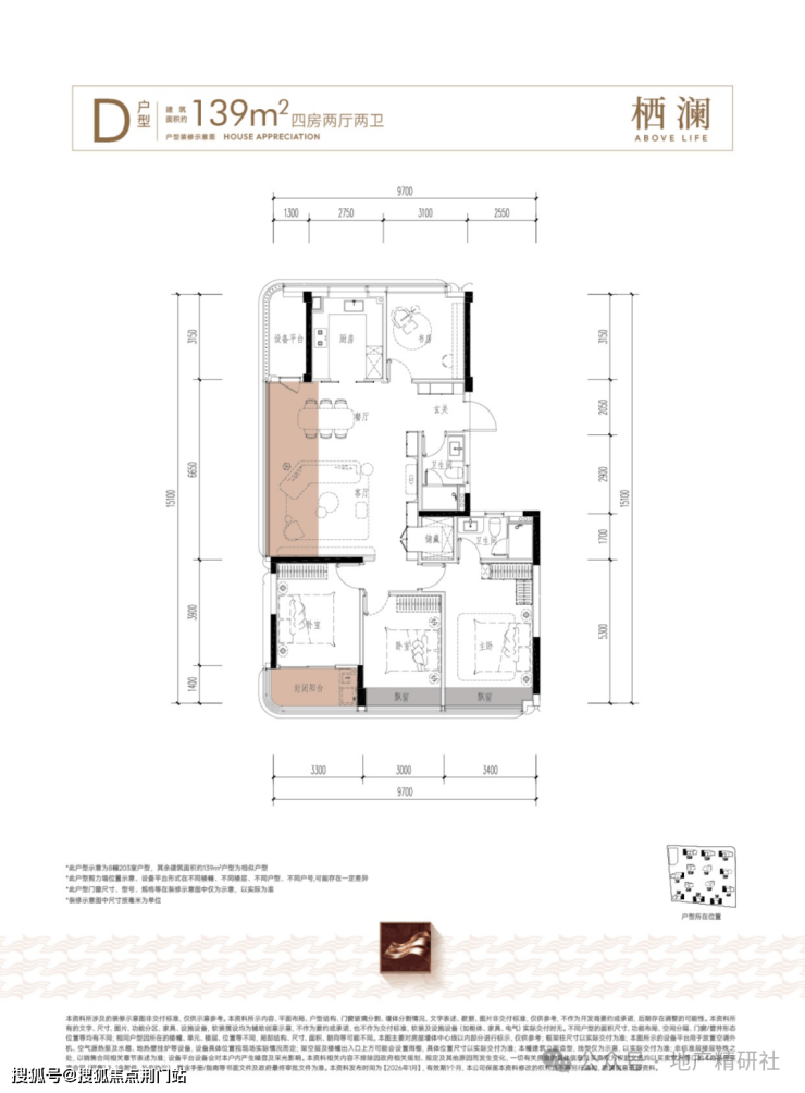 起步的建面约106方,南向开间达到约10米、封闭式阳台、客厅做了S墙,非常适合年轻夫妻或三口之家,空间尺度很舒服。