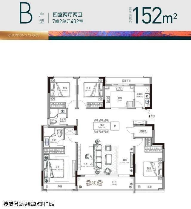 得房率最爆表的是约152㎡大四房,实用率竟有95%,尺度感秒杀同级高层。