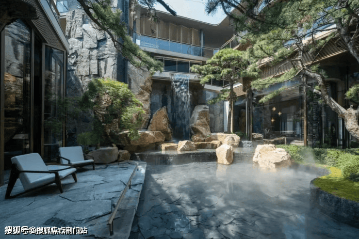景观则借鉴西湖郭庄,于空间和场景的构建转换之中,植入水、石、松、亭、轩、瀑、桥等一系列传统园林符号,通过精妙的组合,营造充满诗意的栖居环境。