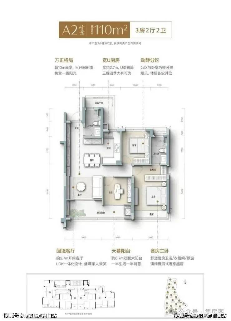 建面约105㎡晴光户型,不仅实现更优面积排布,更做到精神与审美的高度适配。在设计中,这间三房同样拥有南向大面宽,搭配S墙/开放式厨房/一体化餐客厅/多功能书房/酒店套房主卧等,将整个空间的开阔感和互动性做到极致,满足居住者对舒适、安逸的“精准需求”。