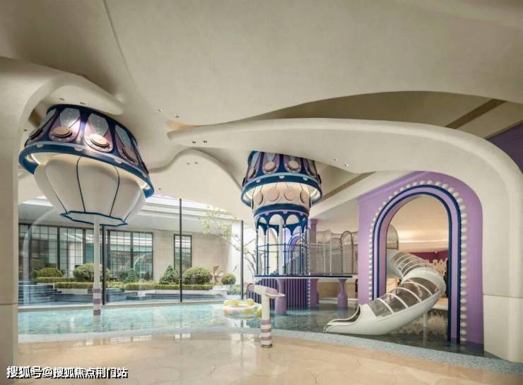 为关怀园区内孩子的成长,杭州溪径恒庐邀请国内顶级设计师,为孩子们打造了一个私家儿童水上游乐园,采用巨型树脂花组合滑梯可喷射彩虹水雾,防滑马赛克拼出抽象动物图案,既安全,又有趣味性。