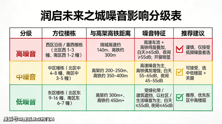 根据楼幢距离模型测算,我也大致整理了一份噪音影响的选房攻略,仅供参考,当然这个只是理论值。