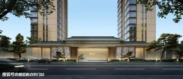 除了得房率出众,项目也有不少地方可圈可点。打造了宽约43.8米大门,四面铝板+大面积玻璃的公建化立面,高窗墙比,看起来很养眼。公区还设计了下沉式庭院、恒温泳池,高层全区覆盖了风雨连廊。
