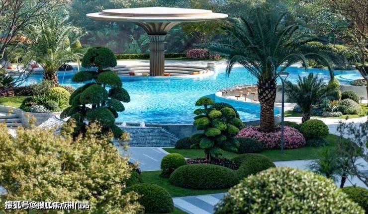 池底是由数万片特选的马赛克,专门请老师傅用传统手工拼花工艺一点点铺上去的,图案灵动又精致。阳光照下来,水面波光粼粼,真的就像一颗巨大的蓝宝石在园区里闪闪发光。