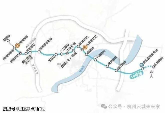 机场快线19号线:直距约870米火车西站站,始于苕溪站,通向萧山机场方向永盛站,从杭州西站到东站仅需30分钟,到萧山机场仅需45分钟。