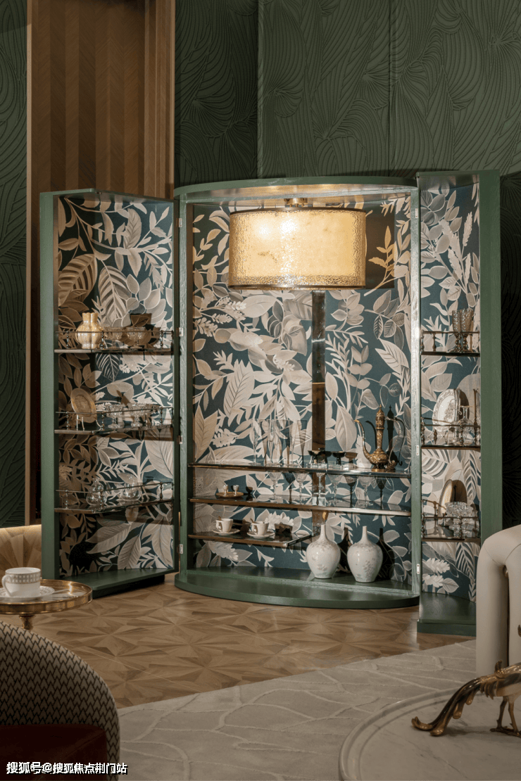 以自然叶脉为蓝本的定制屏风酒柜,用当代设计语言转译自然密码。每个细节都在诉说对女性需求的深刻洞察——既要气场全开的从容,也要慵懒午后的松弛。
