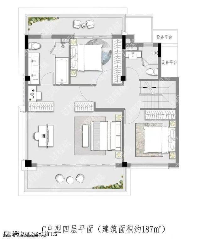 继晓月澄庐后,杭州难得一见的纯四层精装叠墅,容积率仅1.2,户型尺度超卓。
