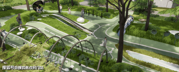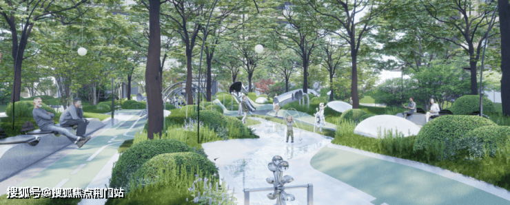 环湖麓屿组团规划了全龄化活动空间,设有林下活动区与儿童游乐区:约4000㎡绿化全林覆盖,以栾树、无患子等主景落叶乔木为主形成自然围合。季节变化的红枫与多彩花境营造优美环境,不同年龄段的居民都能在这里找到适合自己的活动空间,孩子们可以安全地奔跑玩耍,大人们也能休闲交流,真正实现了各年龄段居民的自然互动。