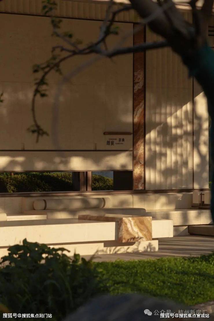 御潮印的下沉式园林打造了世纪城独一份的约300㎡飞瀑松院。园林中央精选多棵名贵泰山松,高度统一近6米,运用全冠移植技艺,入园即是最佳观赏形态;不远处近6米高飞瀑倾斜而下,实现庭院三级叠水,瀑布声和叠水声混合成一曲自然乐章,动静结合,多了些赏玩之趣。