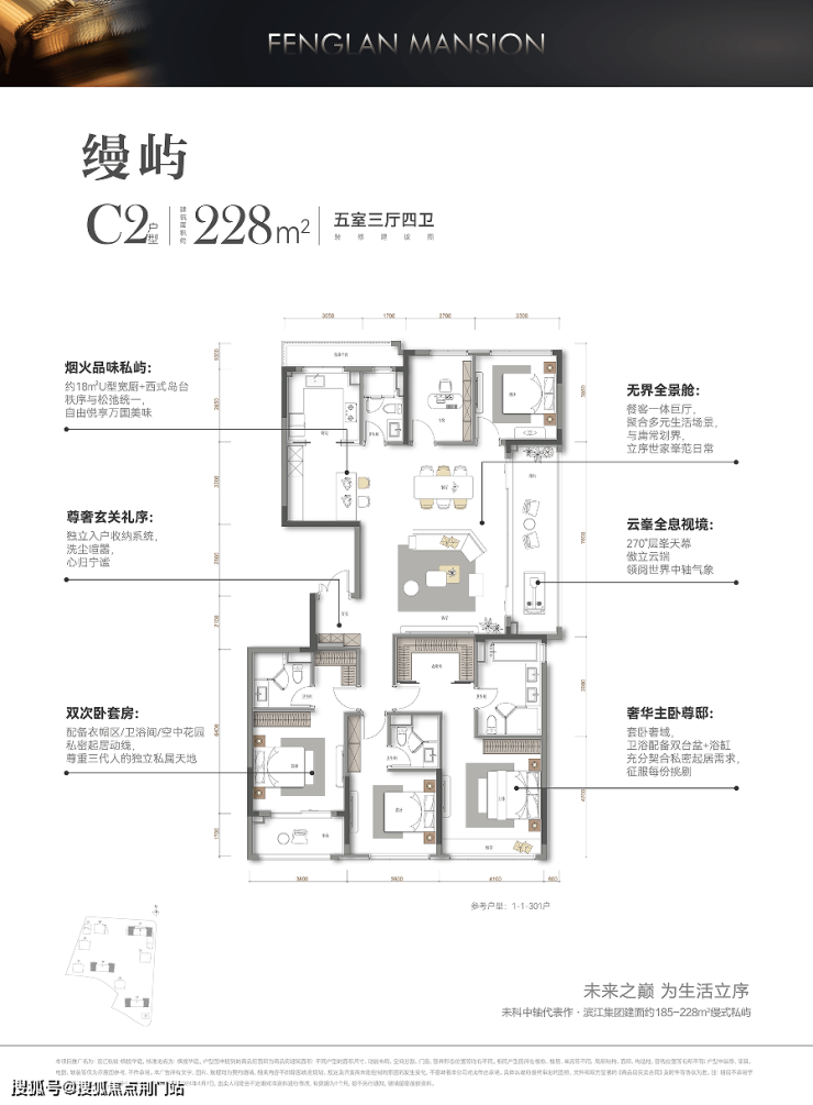 所有户型都是双套房、大阳台、全明通透、大客厅、大面宽、大开窗设计,并且充分结合功能性和舒适性,保证每一种户型的改善性。而且精装限价36100元/㎡,枫揽华庭起步总价仅仅约600万,这样的原始股价格,放在卖一套少一套的绿汀路核心,简直是“硬通货”。