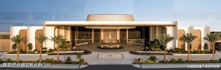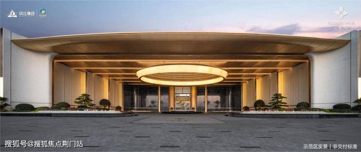 门头「高、阔、深」,高度约9.5米,宽度约66米,深度就像一座小广场,门口的奢石、水景,头顶的透光云石,都是Plus版。