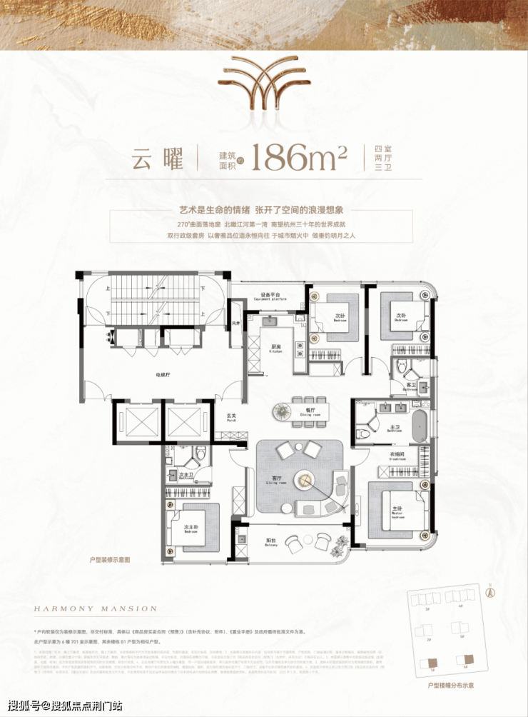 至于建面约355方,双电梯入户,至高规格。以电梯厅为轴,一分为二,左动区,右静区,泾渭分明,互不干扰。至于南向约27米全面屏,双露台加持,任日月星辰洒落。