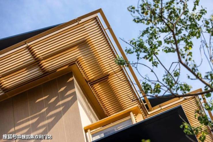 金:建筑立面中,使用了金色的金属格栅、型材,搭配出和谐的色彩感,施工工艺复杂,但可以使整个建筑在阳光下,散发出温润的光芒;