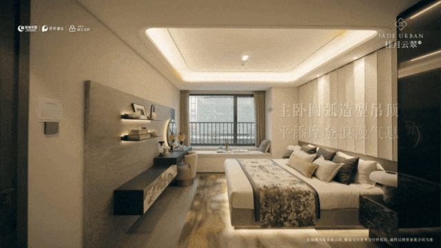 ◈YKK三玻两腔系统门窗:除安全间、阳台门外,均采用YKK三玻两腔系统门窗,保温降噪效果更佳。◈造型背景与吊顶:主卧床头背景墙采用皮革与金属硬包,搭配圆弧造型吊顶,更显温馨。
