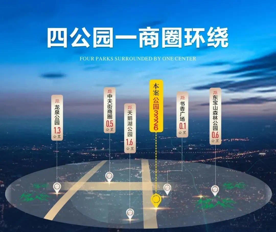 中国铁建公园3326位于东宝区核心,座倚荆楚龙脉东宝山之下,占据风水宝地、聚集天地元气、人杰地灵,北接中天街、及书香广场(正在建设中,荆门园林设计院结合上山通道设计成一个书香主题广场,以郭店楚简和中华书史为核心,以竹简和读书台为设计元素,设计书香有路、健身长廊、书籍成列馆等展示竹简及书籍发展史。),东靠东宝山千佛洞森林公园,占据城市黄金宝地,地理位置优越。30万方品质大盘,醇熟的商业氛围,优雅的双园别致生活,城市繁华尽收眼底。