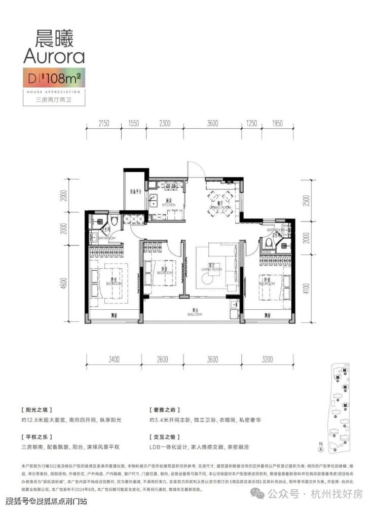 想要尺度感的,可以选建面约108方大三房,居然做到了四开间朝南,非常少的吧?