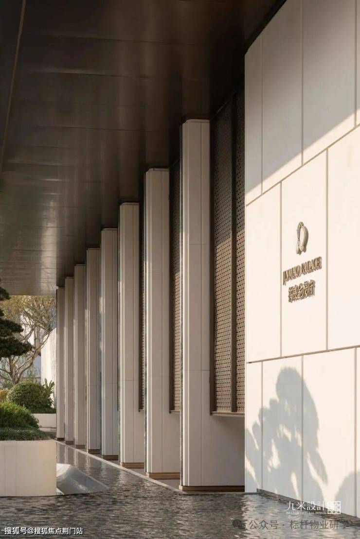外立面最具代表性的双曲面幕墙工艺,是现代“精工”基因的极致体现。所有曲面石材均需经过“荒料甄选——数控雕刻——手工打磨——无缝拼接”四大步骤,最终让建筑在光线投射下,折射出如运河水面般柔和的层次光影,弱化了硬朗的边界。南立面的“天青色”奢石圆弧壁柱,更是精工的直接体现。每一根壁柱均由整块天然奢石切割打磨而成,无任何拼接痕迹,以材质厚重感呼应运河的文化积淀。