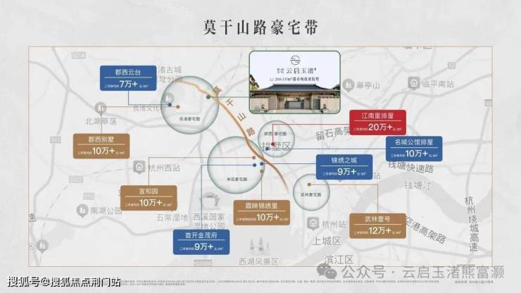 低密纯墅居,离尘不离城项目西邻良渚文化村(大屋顶、玉鸟集旁),占据板块内优越位置,坐拥水到渠成的醇熟生活配套,出门就是繁华场,近距离享受良渚文化村所有内部、外部配套。