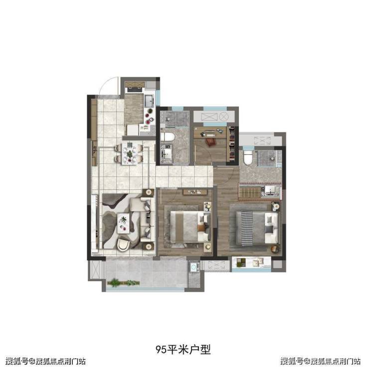 舒适三居:建面约95㎡三室两厅两卫