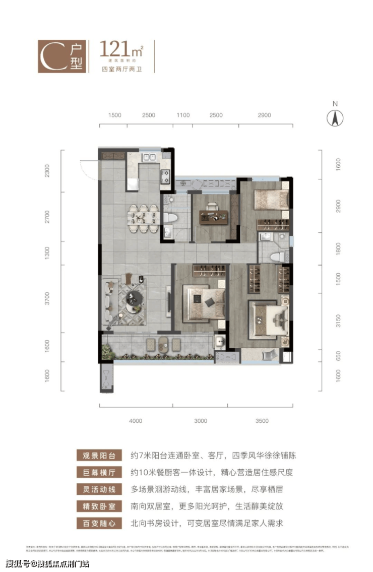 建面约89m²全能大三房,主次卧空间充沛,主卧套房式设计、三开间朝南向、双卫设计,空间多得;建筑面积约105㎡大三房全明户型,双卧朝南、拥约7米南向景观阳台、餐客一体横向约6米宽幅采光。更高的得房率,安放生活多重逸趣。
