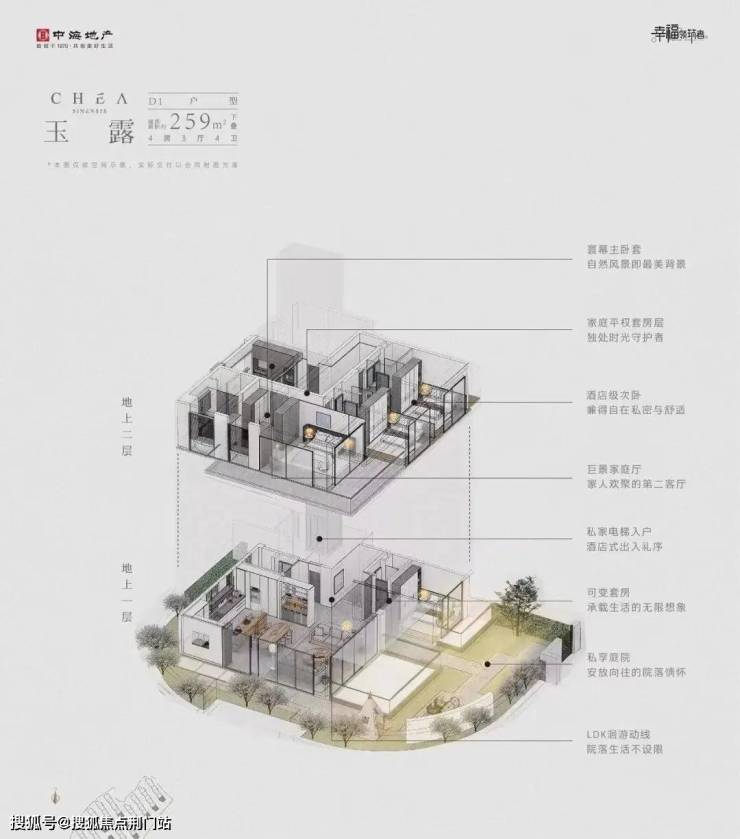 月陇云岚所有房源均 独立入户,下叠大部分都有前庭后院,南北入户;上叠为北庭院入户;在户型上另一张王牌是「全套房」户型,每个房间都是套房,堪称叠墅户型专家。这套建筑面积约221平米下叠户型,一层大厅将尺度感做到极致,一层套房卧室适合老人。