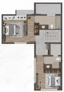 3楼是主人套房一个卫生间 衣帽间 两侧做了双侧的柜子