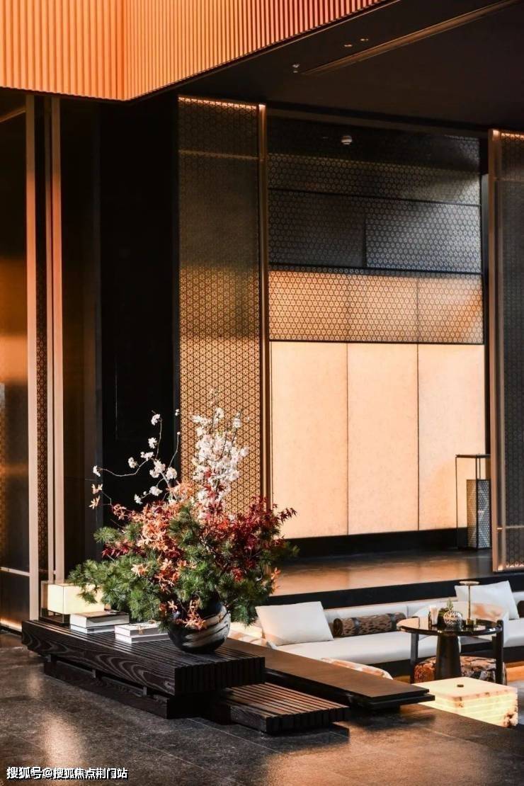 恒温泳池是会所的一大亮点,游泳体验更为宽阔、舒适;黑山石、梅花金属格栅等元素的植入,更是营造出自然汤泉的意境。