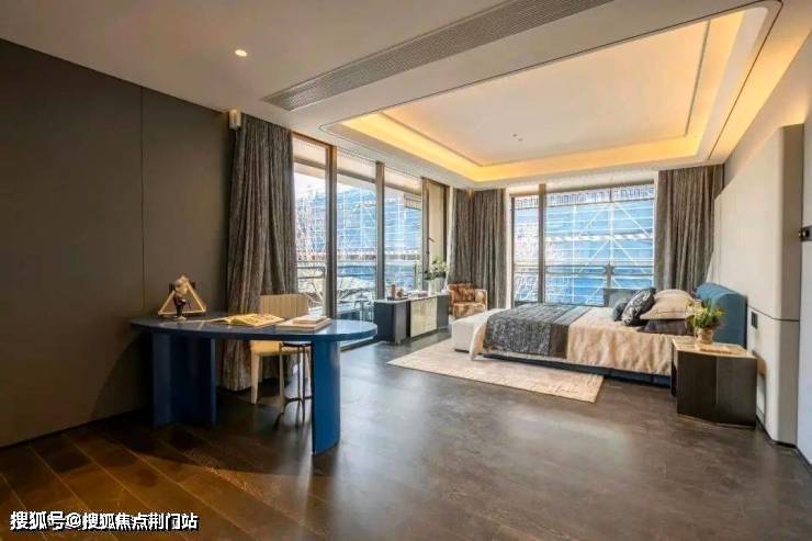 在立面设计上,LEAP绿城利普巧妙融合现代东方美学,精选蓝眼睛石材、铝板与玻璃幕墙等高端材质,营造出层次丰富的视觉效果。香槟金与古典灰的和谐搭配,彰显出空间的典雅与精致韵味。