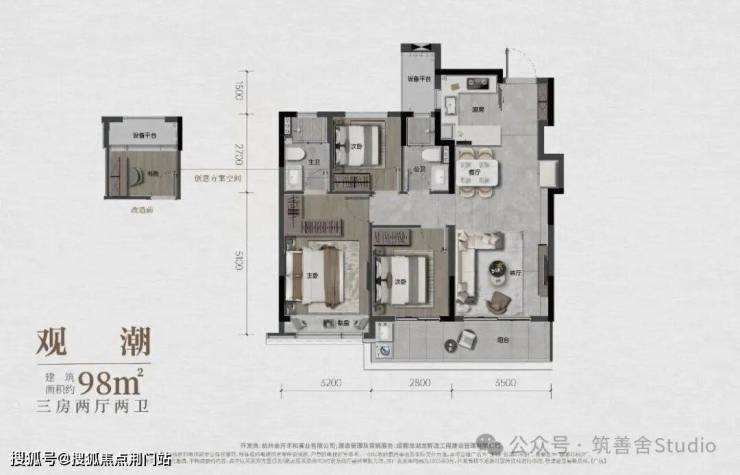 98㎡的三房户型,南向9.5米宽景面,双开间阳台尽揽风光,全明格局无暗角。这个户型虽小,收纳力很惊人:S墙玄关柜、主卧独立衣帽间,总收纳空间达11743L(相当于147个28寸行李箱),让生活井然有序。