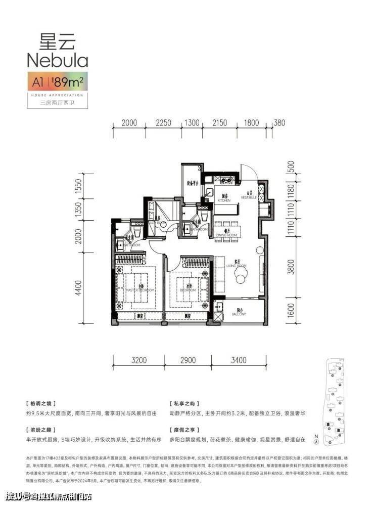 带独立玄关收纳,南边套房主卧带走入式衣帽间+独立卫浴+飘窗,南向约6.4米面宽,带阳台,U型厨房带大开窗,餐客厅一体带约5.8米超长飘窗……该户型更具有生命力。