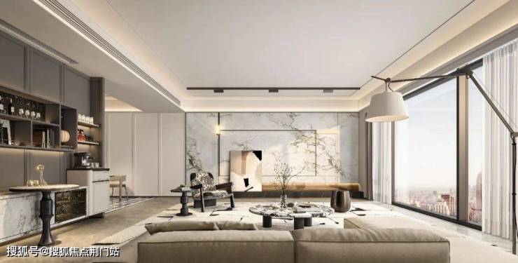 客厅、餐厅、厨房、阳台等,是家庭社交发生的载体,打破公区间的隔阂,形成通透完整的空间已经是当下品质住宅的标配。围绕着完整公区,我们试图植入更多的场景模块和动线模式,实现家庭关系从"物理共存"到"情感共融"的进化跃迁。