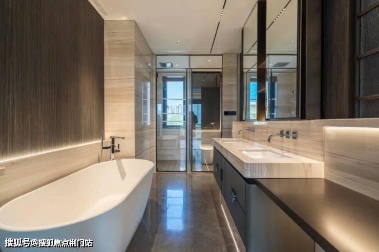 约43平的豪华主卧,顶别人家3个房间的大小,将衣帽区、卫生间、卧室做“三分区”独立设计,极致的享受、私密性拉满。如此阔绰的空间使用和布局,小胖之前多在别墅户型里见到。