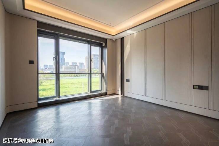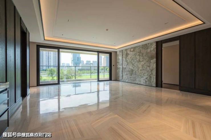 打开户内门往里走,南向开间约18米,南北通透,全落地窗设计,豪宅感十足。