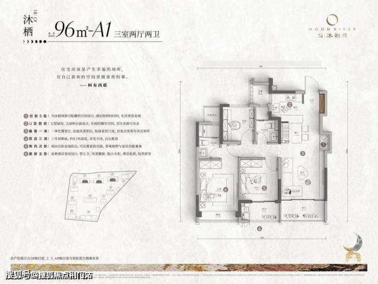 主力户型约96-135㎡,不厌其烦地设计了7款户型,每一款都带双阳台。无论你是单身、新婚、二孩家庭、三代同堂……都能在沐新月找到答案。