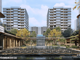 整体小区似悬浮于地面之上,有种离开城市喧嚣,进入隐奢酒店的质感。社区外,看不见小区内,更私密;而从社区内往外看,因为地势更高,犹如观景台,外部公园成为一道景观。