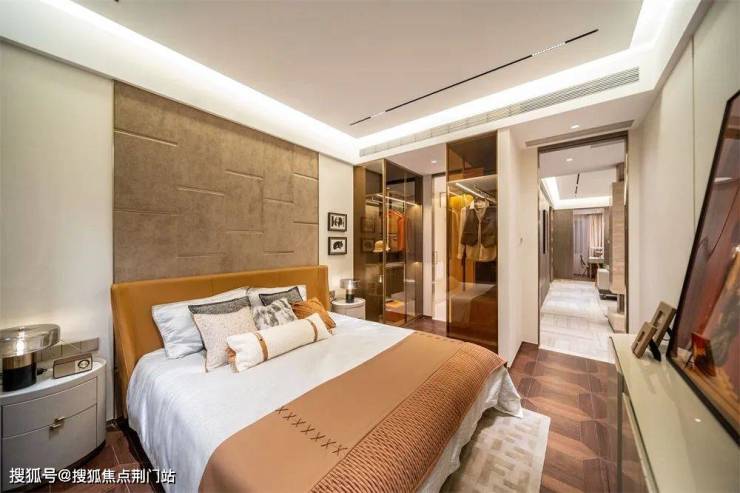 套房式主卧,带飘窗、衣帽间和卫生间,全面覆盖男女主人的生活所需。周末坐在飘窗上看书喝茶,累了就靠枕小憩,还可设计为收纳的地方,为空间扩容。