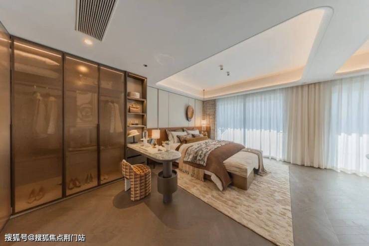 从餐客厅的大理石地面、岩板背景墙,到厨房的老板四件套(含三眼灶);从主卧的硬包背景墙、鱼骨拼地板,再到主卧卫生间的镜柜嵌美妆冰箱、石材底座浴缸,实用与质感直接拉满。