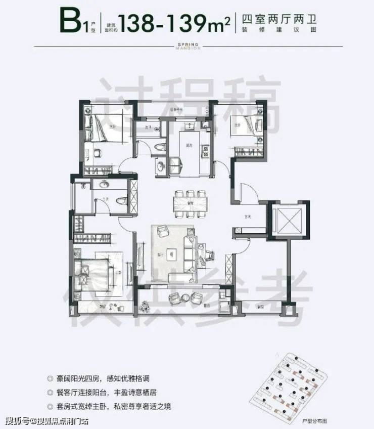 其次是建面约139㎡四房户型: