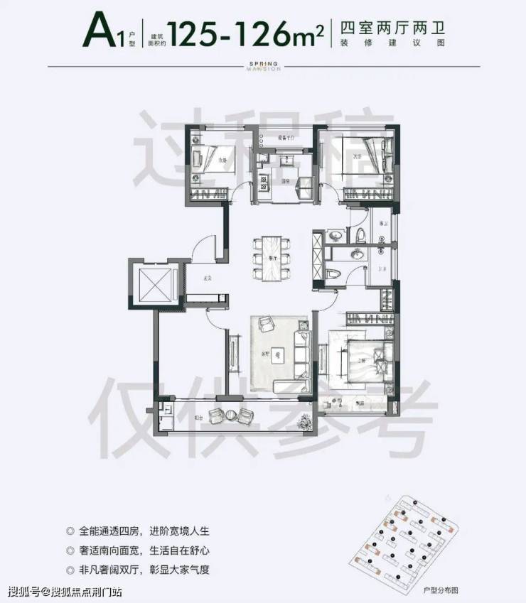 首先是建面约125㎡四房户型: