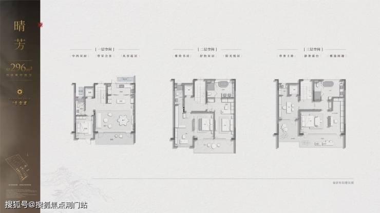 建面约296-339㎡,地上三层设计,首层层高约3.5米,搭配大面积落地窗